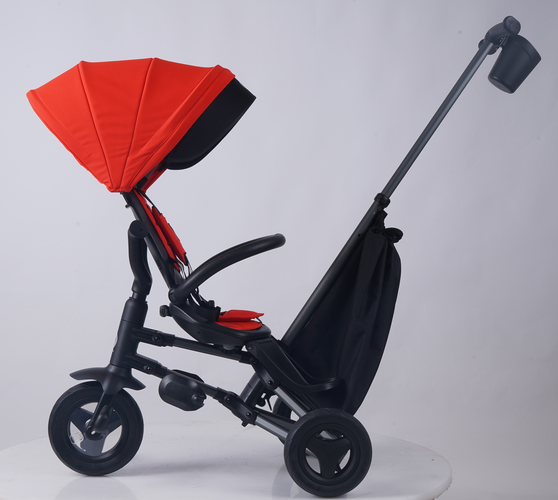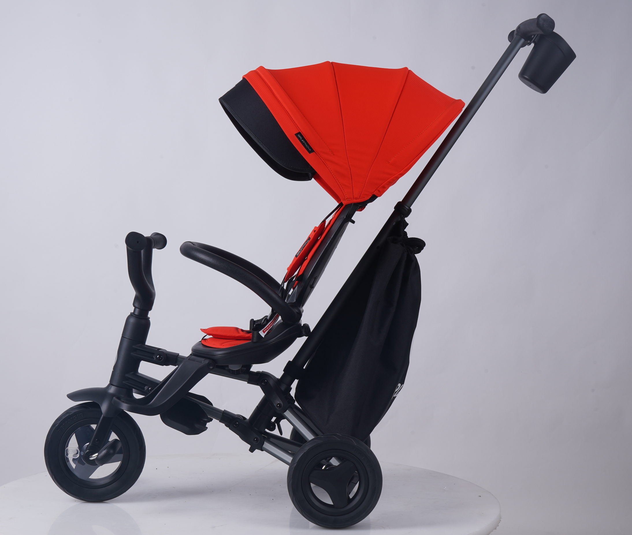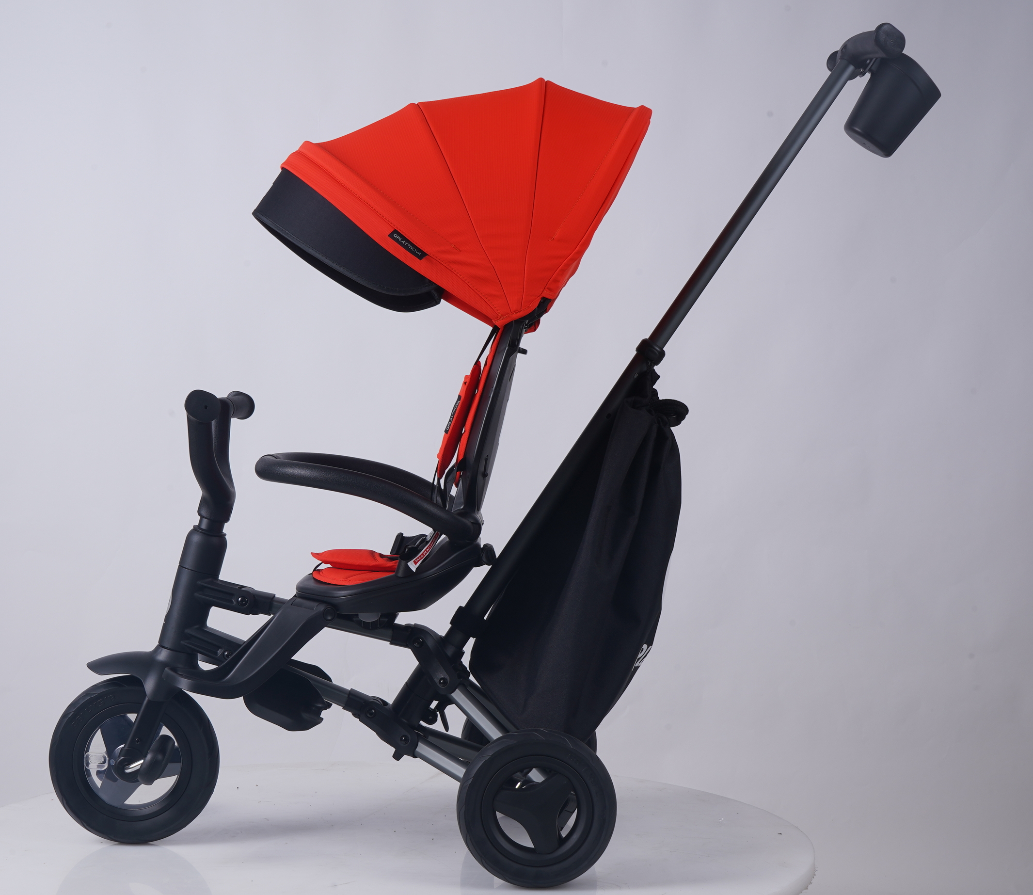 NOVA+ RUBBER має сучасну алюмінієву конструкцію, зручне профільоване сидіння з поворотом на 360 градусів, яке дозволить подорожувати вперед або назад обличчям. Система швидкого складання дозволяє зібрати велосипед кількома простими рухами. Сидіння має 2 кути нахилу. Після демонтажу ручки управління, бамперу, капюшона і чохла на сидіння NOVA+ RUBBER буде служити класичним триколісним велосипедом.