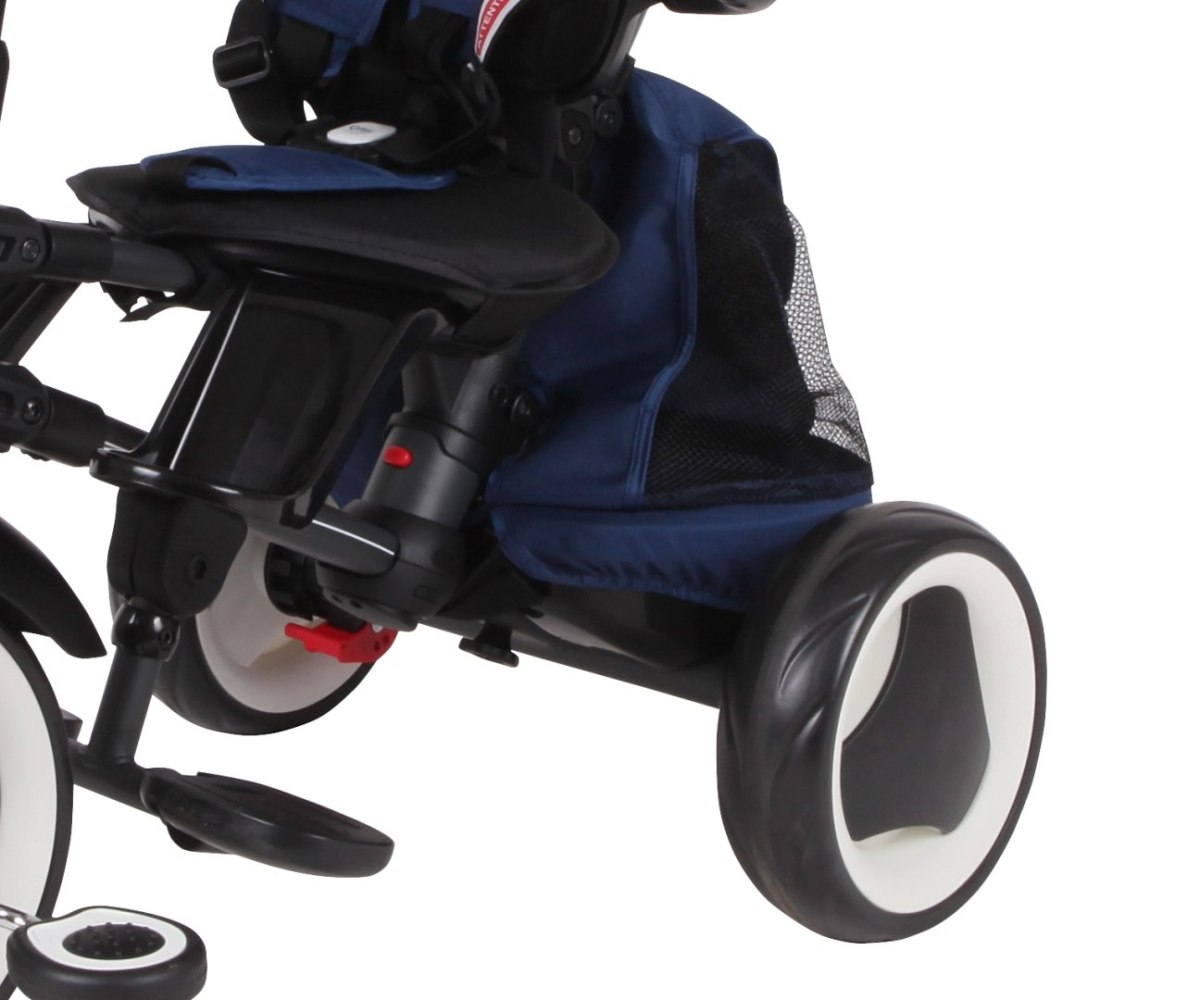 – від 4 років малюк може використовувати велосипед самостійно, як класичний триколісний, зі зручною корзиною для іграшок. Достатньо від’єднати батьківську ручку, високу спинку сидушки.