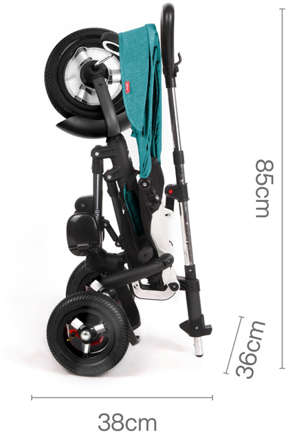Складаний триколісний велосипед з батьківською ручкою. Після демонтажу ручки, капюшона і чохла сидіння- RITO буде служити як класичний триколісний велосипед.